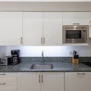 The open-plan living area is designed for easy togetherness. A well-appointed kitchen flows into a relaxed lounge space, creating a natural setting for cooking, conversation, and quiet evenings in. Whether traveling as a couple, with friends, or as a small family, the layout feels intuitive and welcoming.