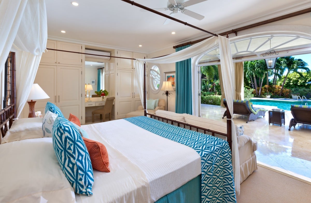 Bedroom 4: First floor bedroom with a queen-size bed, A/C, ceiling fan and en-suite bathroom with shower, double vanity and WC. 2 guests maximum.