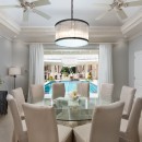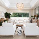 The other indoor spaces include a large and casual lounge with entertainment system. It is furnished in a chic black and white palette and opens directly to the gardens, too. There is a home theater and game room, and a formal dining room is nearby and yet the luxurious gourmet kitchen is also an eat-in style done in a black, white and red palette. It will satisfy even the most finicky cooks, but this villa is fully staffed and time spent cooking is unnecessary.